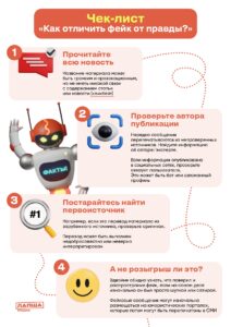 Онлайн-курс. В рамках проекта «Лапша Медиа» сформирован курс содержательных лекций, в которых рассказывается как самостоятельно осуществлять проверку информации. Ведущим выступил Александр Пушной, российский телеведущий. С материалами можно ознакомиться по ссылке: https://disk.yandex.ru/d/wfo9XMwvEPEPRA/Final