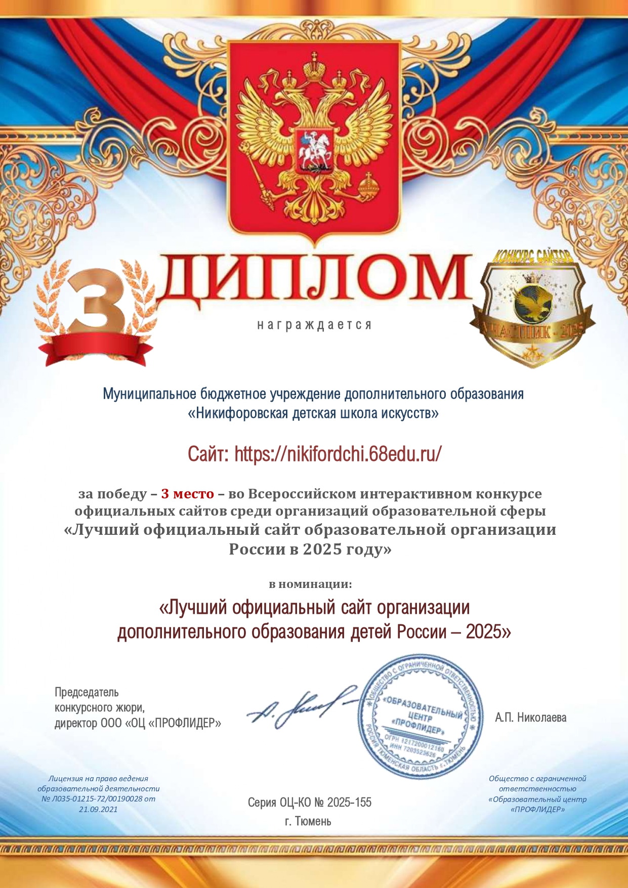 Муниципальное бюджетное учреждение дополнительного образования «Никифоровская детская школа искусств» является участником национального проекта «Семья» по направлению «Семейные ценности и инфраструктура культуры»
